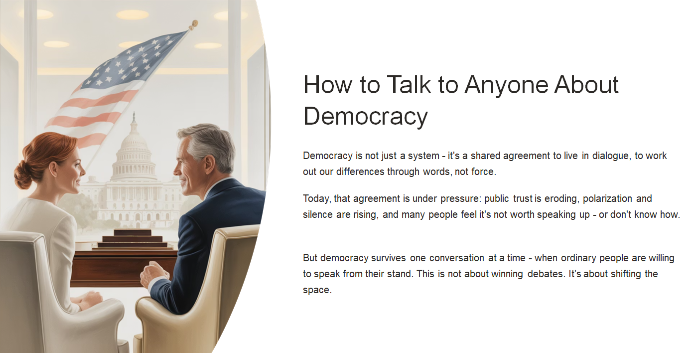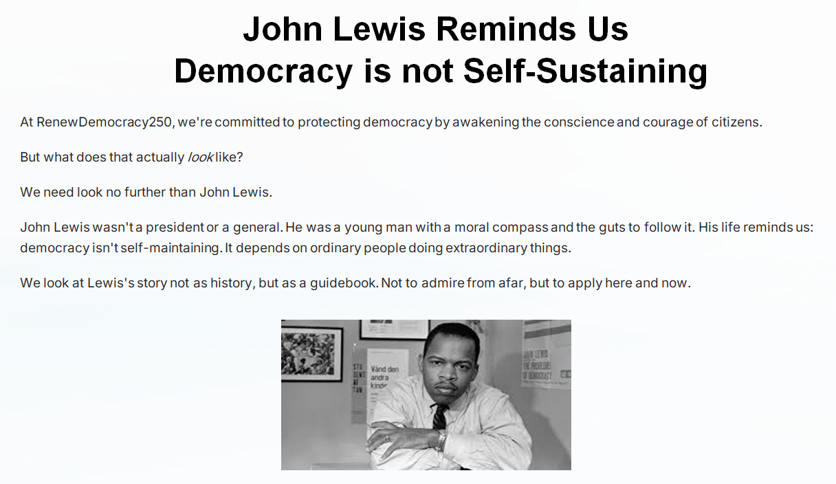 Democracy needs defenders, and it starts with you! Sign up to attend the Renew Democracy 250 weekly Zoom community call. Hear from special guests, learn how to take action, and connect with community members.