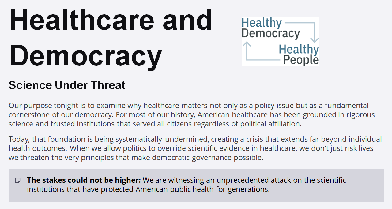 Please join us in an open forum conversation via Zoom. This will be a safe space to come together, share our voices, and speak openly about the state of our democracy and the challenges facing our government today.